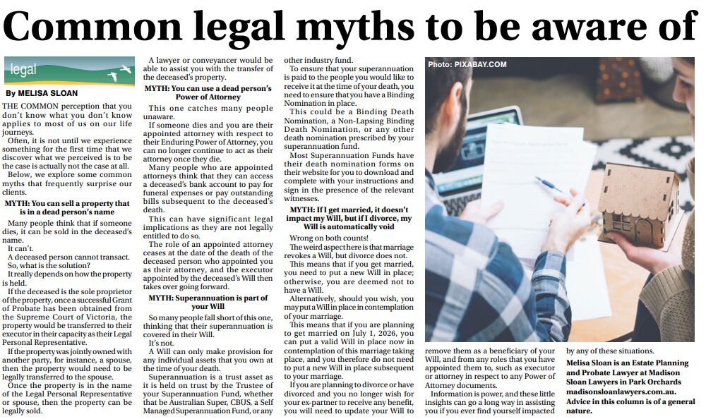 If you need an expert to talk about leaving a legacy, estate planning or tackling life’s ‘big moments’ or if you would like to interview Melisa please feel free to contact her directly at melisa@melisasloan.com.au.